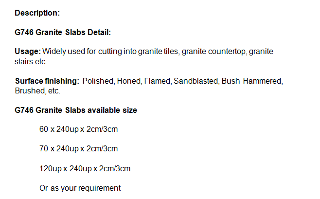 G746 Granite As a kind of brown granite from China, G746 Granite is commonly used in construction stone, ornamental stone and so on. G746 Granite can also be called China Baltic Brown.China History Stone Own Factory High Quality G746 Baltic Brown Granite Slabs and Tiles Polishing